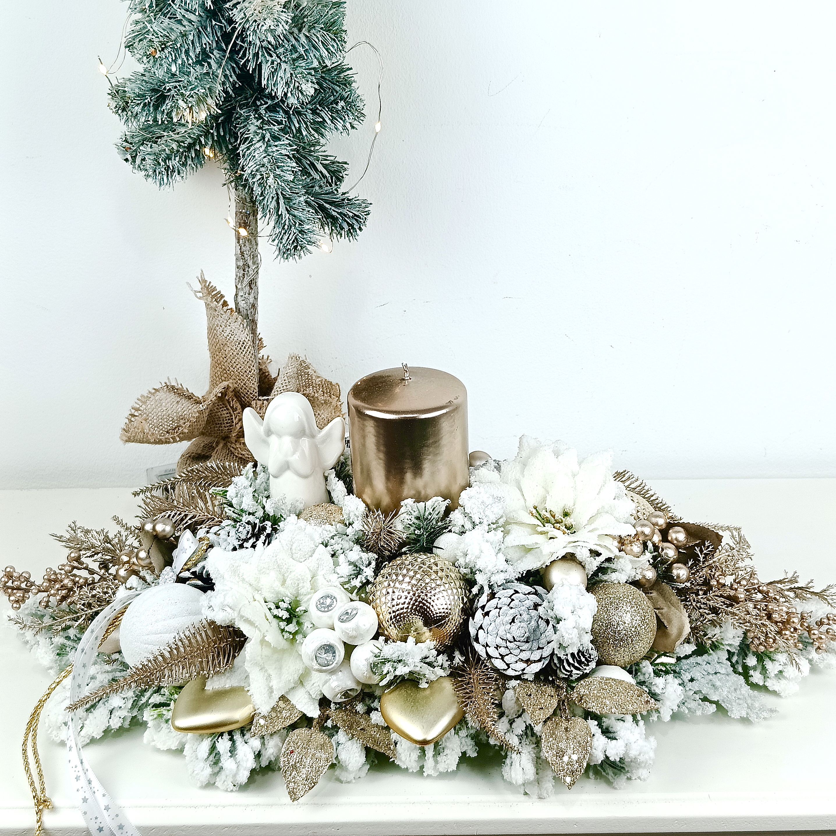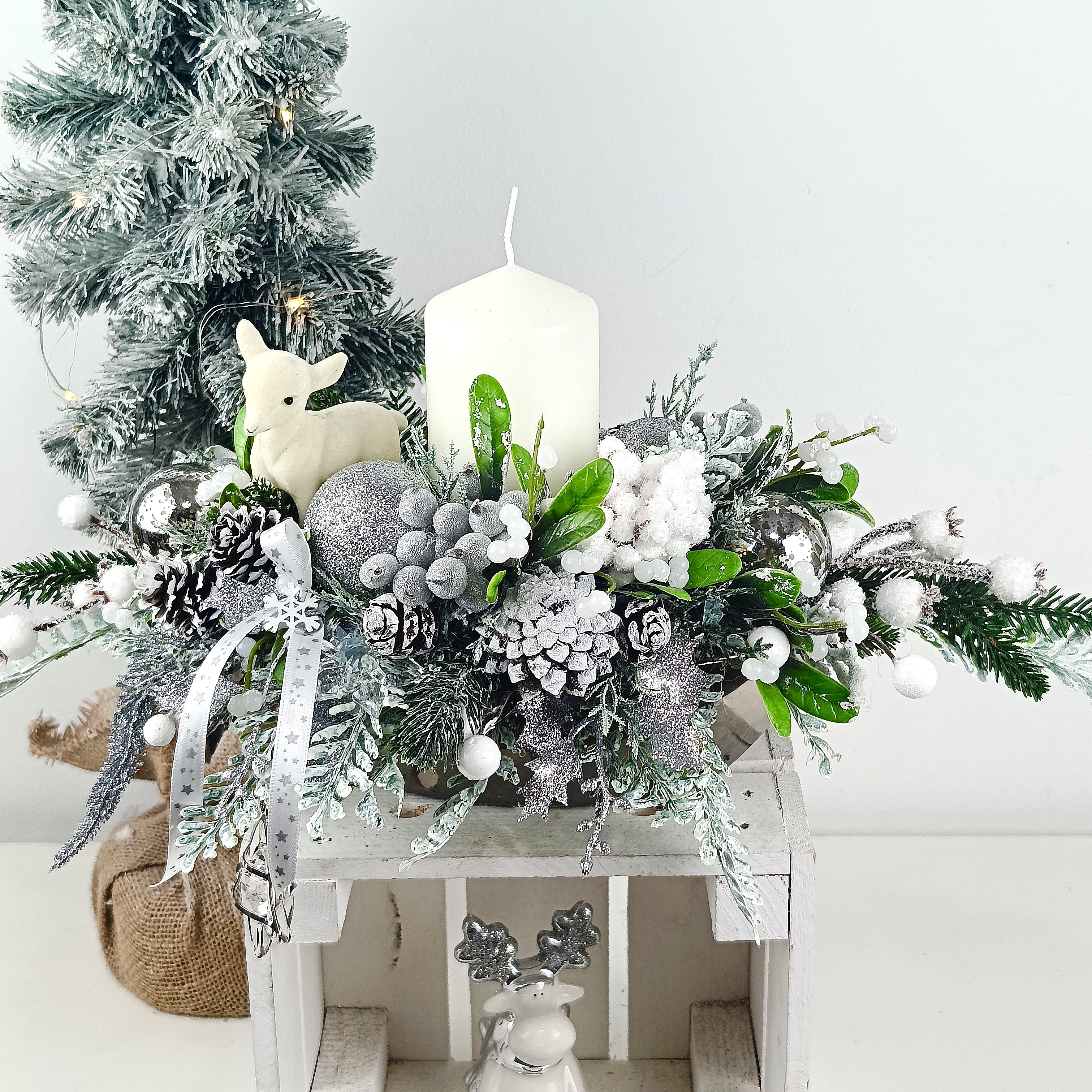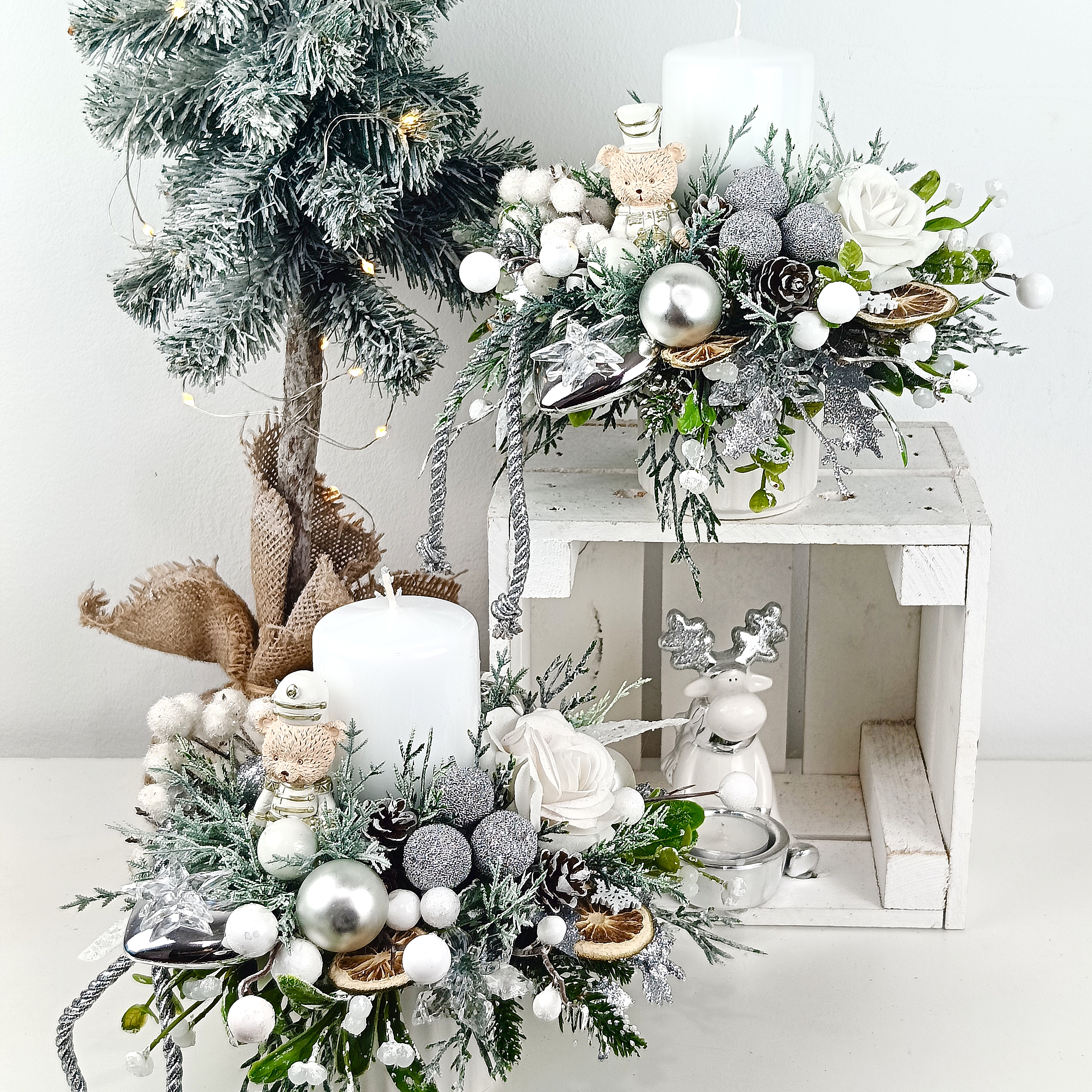 Stroik biało - srebrny z misiem żołnierzykiem nr 55